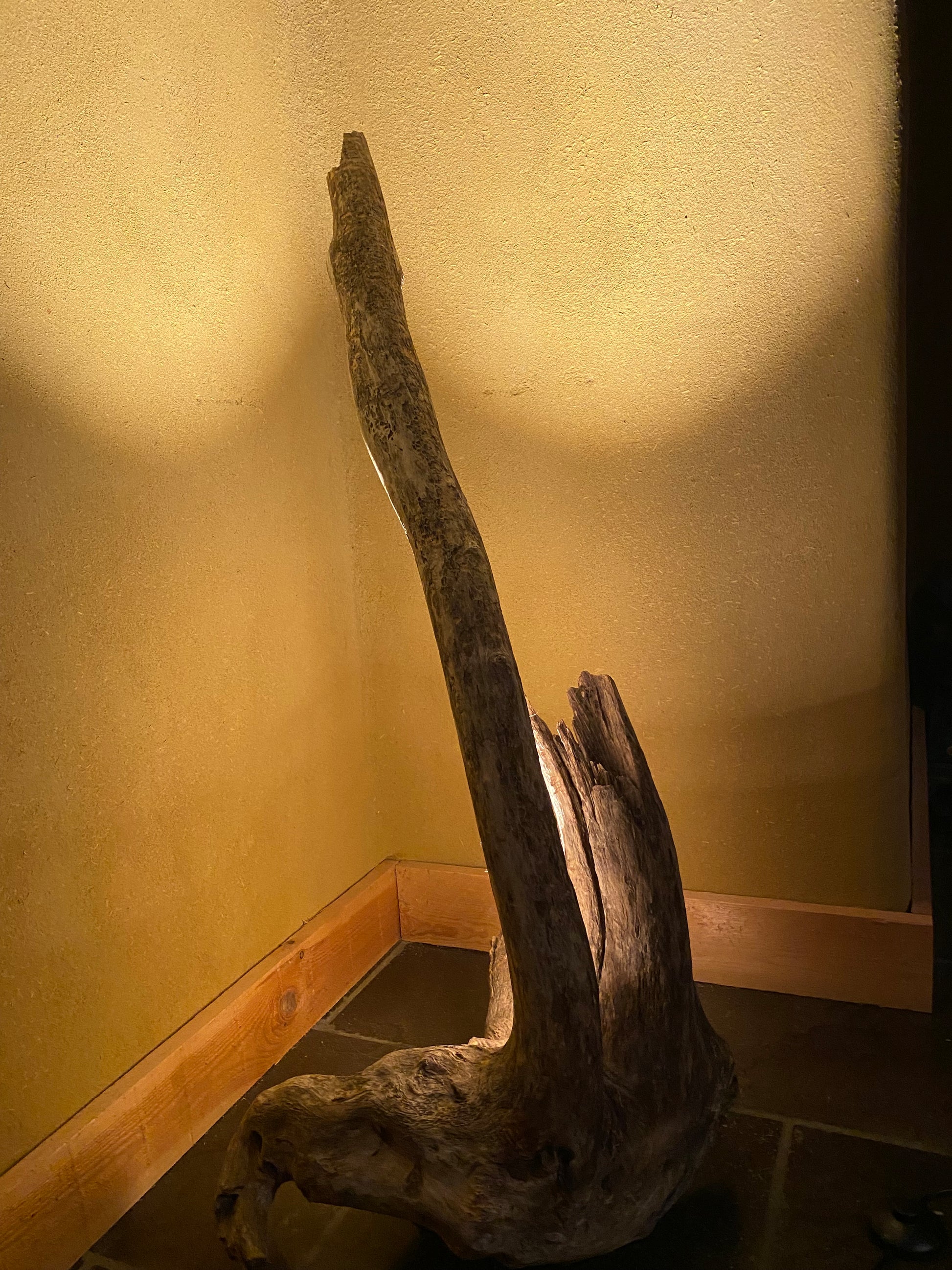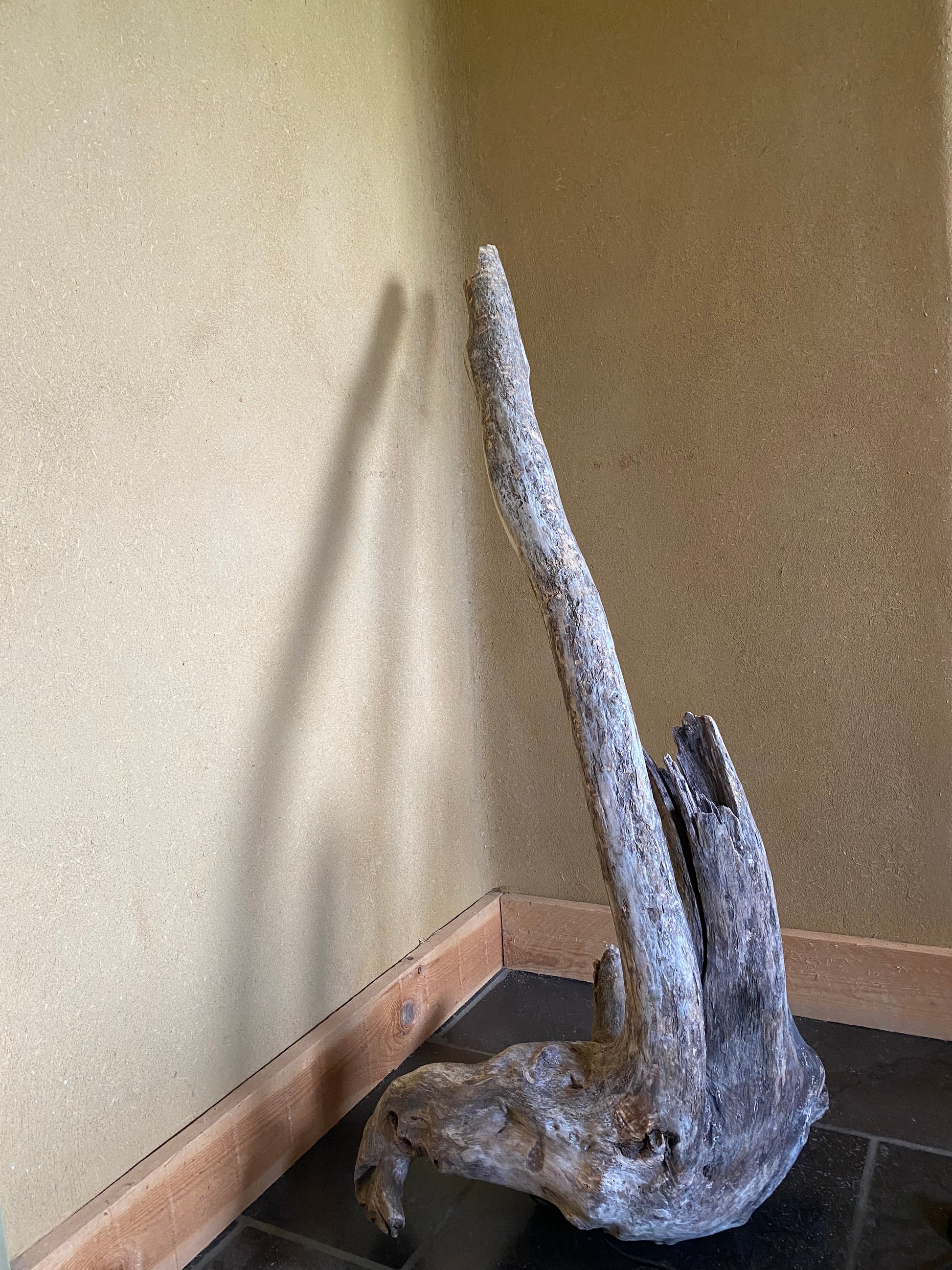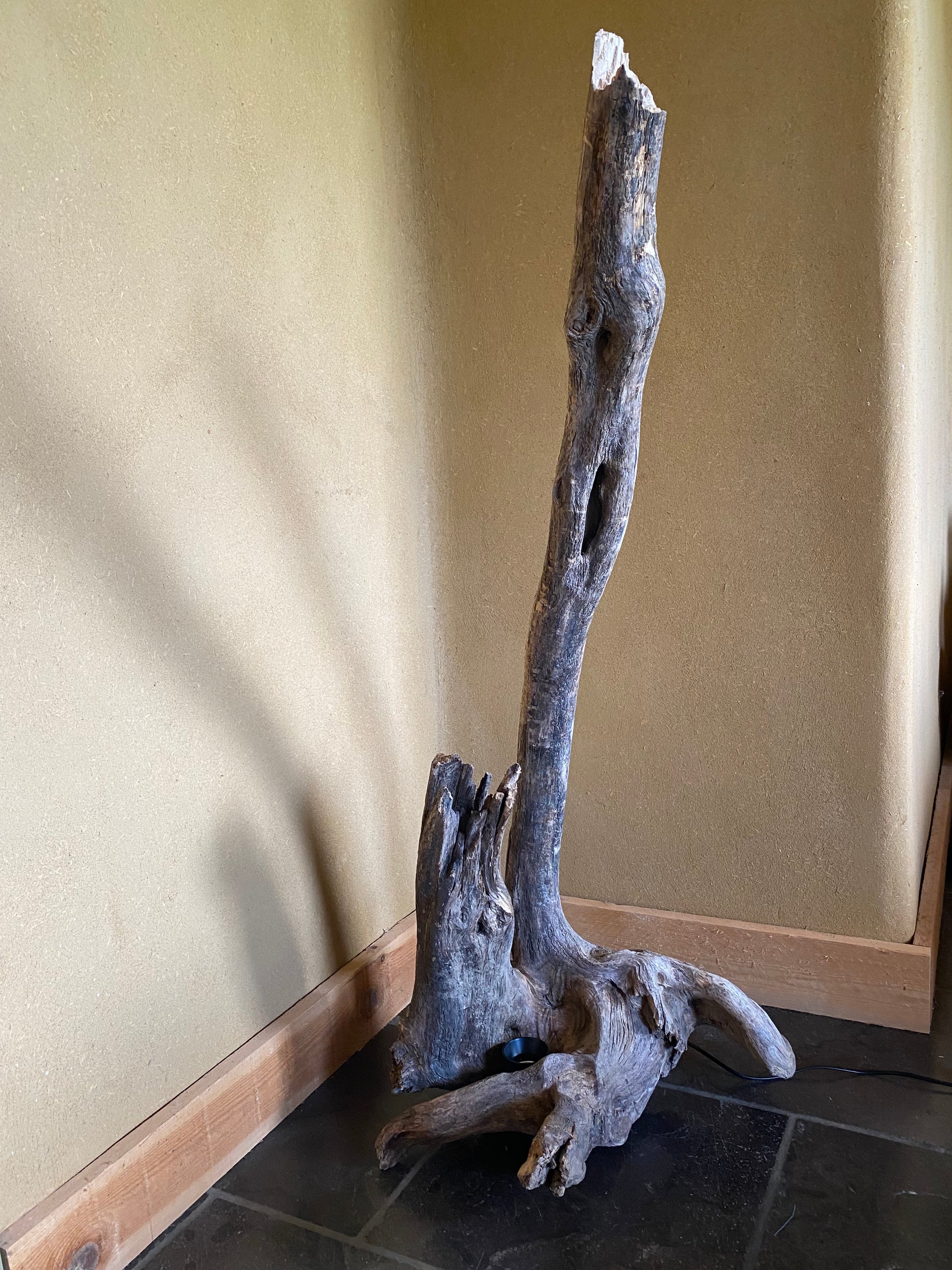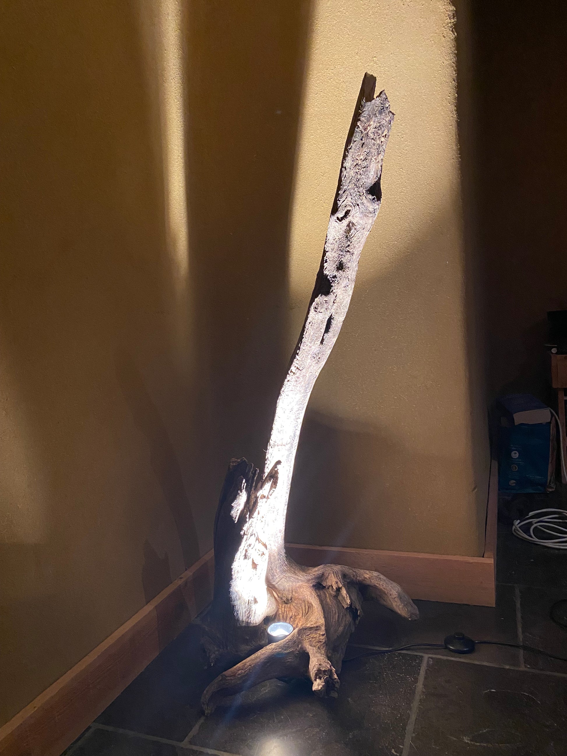Unieke verweerde vloerlamp uit drifthout vervaardigd